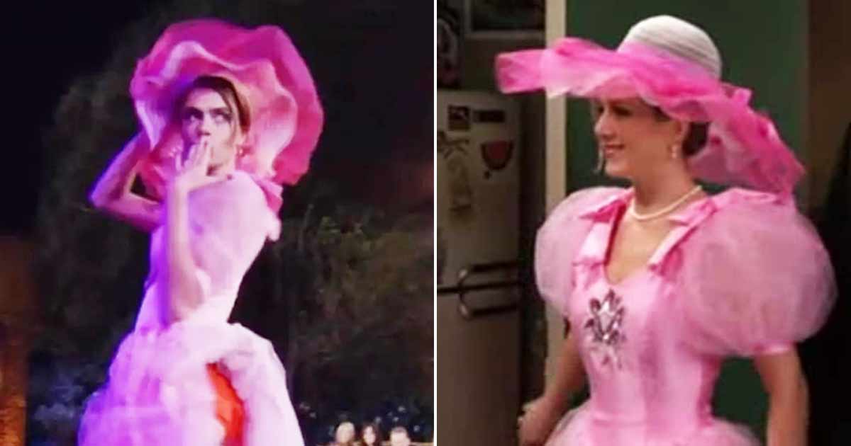 Remembering the dress now? The one with puffy pink sleeves, and a floofy skirt that has Chandler saying he doesn’t have her sheep. While the pink itself sure made Jennifer Anniston’s Rachel Green stand apart from the other weddinggoers (besides the other bridesmaids), she also suffered a not-so-subtle wardrobe malfunction and showed off her underwear as unknowingly she left the skirt tucked in her red panties. And that’s what Cara Delevingne recreated – sweet na!