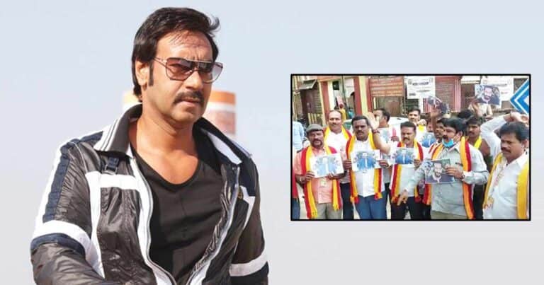 The protestors held photographs of Ajay Devgn and raised slogans against him. The agitators explained that repeatedly north Indians are provoking the people of Karnataka regarding the imposition of Hindi.