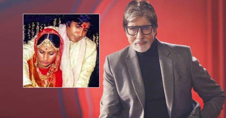 Amitabh posted the picture on Instagram, where he is seen dressed in a golden sherwani, while Jaya is sporting an all red wedding lehenga.
