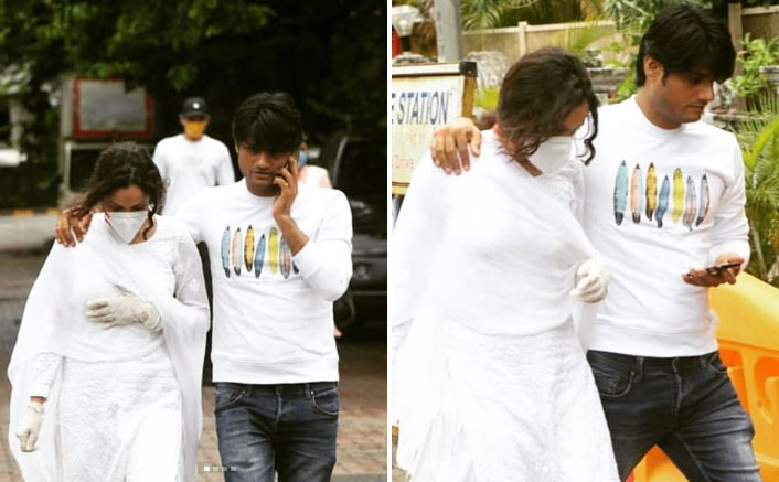 Now, pictures have surfaced online. Ankita Lokhande can be seen dressed in a white salwar suit. She had covered her face with a COVID-19 mask, owing to the coronavirus pandemic. The actress looked completely devastated as she made her way into Sushant Singh Rajput’s house. Accompanying her was the producer and close friend Ssandip Singh.