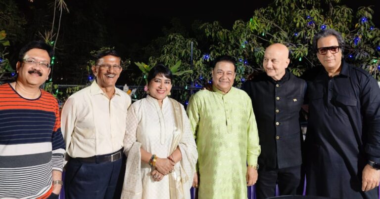 Aapki Uunchai hi aapki Saaransh hai,” said Anup Jalota to an emotional actor Anupam Kher when the latter shared stage with Talat Aziz who sang Daddy’s Aaaina Mujhse Meri Pehli Si Soorat Maange for Kher at a quaint familial gathering. The gathering took place at Jalota’s residence in celebration of him receiving the Sangeet Natak Akademi Awards.