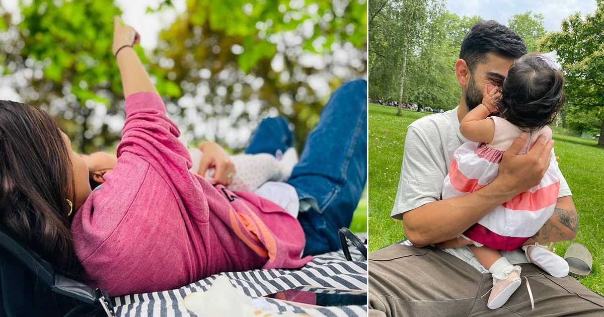 Anushka has shared two pictures on Instagram. The first picture sees Anushka playing with Vamika while the second image has Virat holding their daughter and smiling.