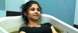 To distract herself from the stench she was seen singing songs. She continued to be in the dung-tub for almost an hour, after which Bigg Boss announced the end of the treatment. The success of the treatment helped the hell-mates earn a point, securing their lead over the heaven-side. When she came out of the lab, everyone applauded her for this brave act and complimented her for finishing the task successfully.