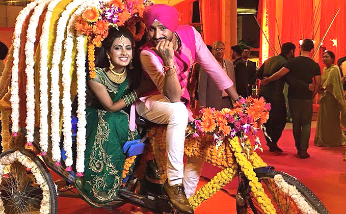 Cricketer Harbhajan Singh and actress Geeta Basra who are all set to tie the wedding knot on 29th October were seen enjoying themselves in their Sangeet and Mehendi ceremony. The couple rocked in a traditional attire, Geeta was seen wearing Archana Kochhar lehenga and Harbhajan looked good in a ‘punjabi munda’ avatar.