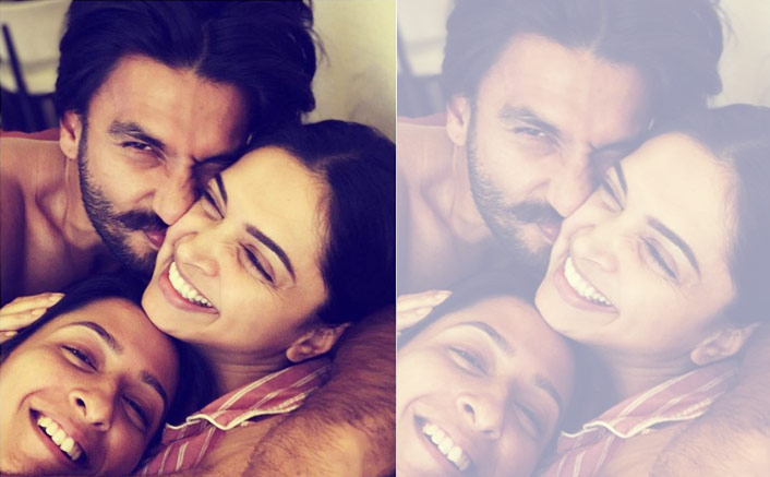 Deepika captioned the pic as, “cuddles & snuggles! smashed in the middle!❤️ @ranveersingh @anishapadukone”