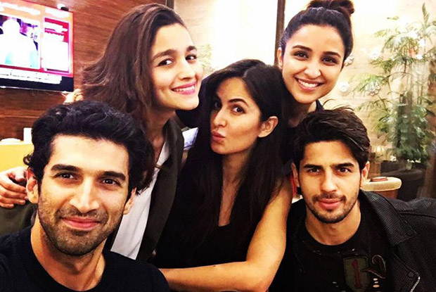 We found two pictures of the team, one with Parineeti, Alia, Sidharth, Katrina and Aditya posing together.