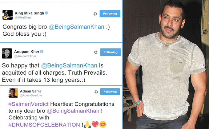 Following the news, congratulations also came in from singer Adnan Sami, who crooned the melodious track “Bhardo jholi” in “Bajrangi Bhaijaan“. “#SalmanVerdict Heartiest Congratulations to my dear bro @BeingSalmanKhan! Celebrating with #DRUMSOFCELEBRATION,” he posted.