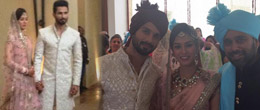 Officially announced man and wife, Shahid Kapoor and Mira Rajput posed before the media for the first time after their wedding. Shahid looked stunning in a white sherwani, designed by Kunal Rawal, with heavy work where as Mira looked gorgeous in a light pink lehenga. The couple looked completely adorable!