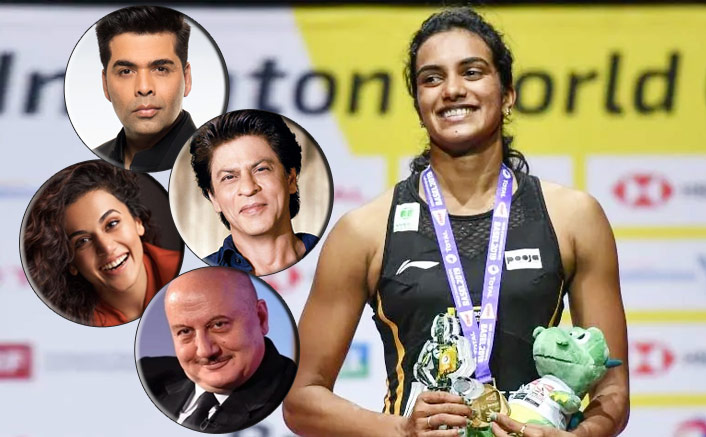 After ace shuttler P.V. Sindhu on Sunday became the first Indian to win the BWF World Championships, members of the Indian film fraternity, including Shah Rukh Khan, Anupam Kher, Taapsee Pannu and Karan Johar, took to social media to congratulate the ace shuttler.