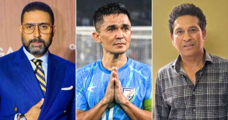 It’s a sad day for football fans in India and around the world as legendary player and captain Sunil Chhetri has finally played his last match. The player announced his retirement after a monumental run as the captain of the Indian Football team. Touted as India’s answer to greats like Messi, Ronaldo, Beckham, and more, Chhetri’s retirement is emotional for many, including celebrities. Abhishek Bachchan, Sachi Tendulkar, and Ranveer Singh are just a few of the names that paid tribute to Sunil Chhetri.
