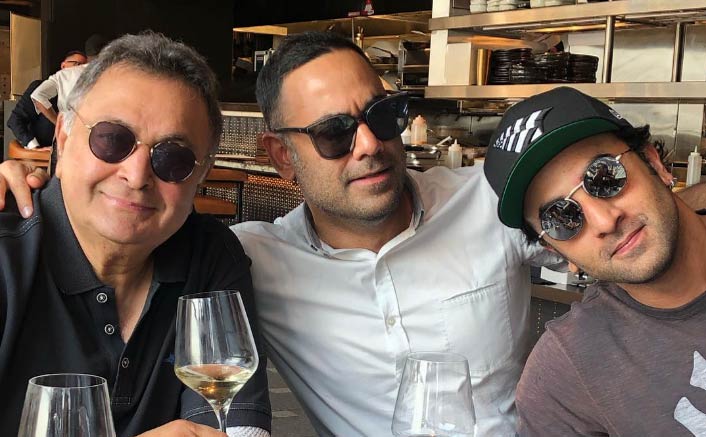 Veteran actor Rishi Kapoor bonded with his son Ranbir and son-in-law Bharat Sahni over white wine in New York.