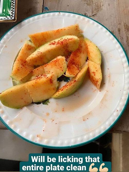 The actress took to her Instagram story to share a picture of a plate full of sliced raw mangoes marinated with red chilli powder and salt. She captioned: “Will be licking that entire plate clean.”