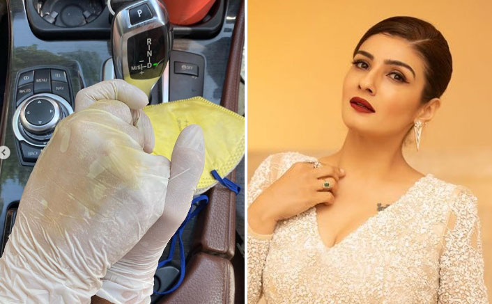 Raveena shared a photograph on Instagram. In the image, she is seen holding her husband Anil Thadani’s hand but with rubber gloves on.