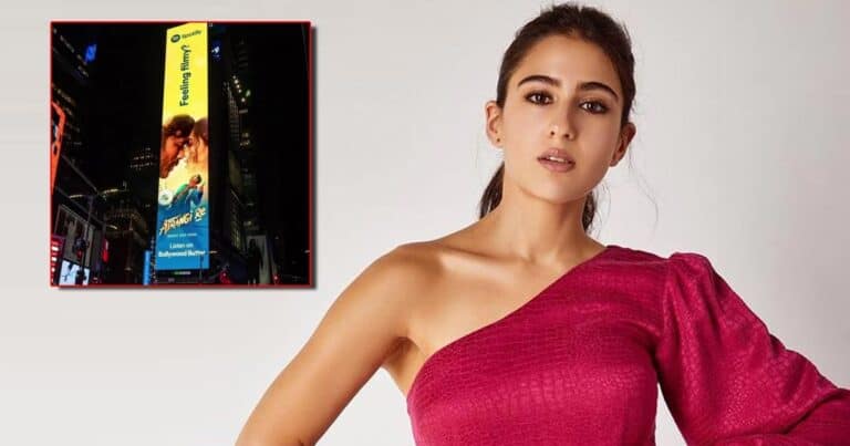 A day after the Ranveer Singh-starrer ’83’ lit up Dubai’s iconic Burj Khalifa, another global landmark, the much-filmed electronic billboard on One Times Square, New York City, is now emblazoned with a poster from ‘Atrangi Re’ featuring Tamil superstar (and Rajinikanth’s son-in-law) Dhanush and Sara Ali Khan.