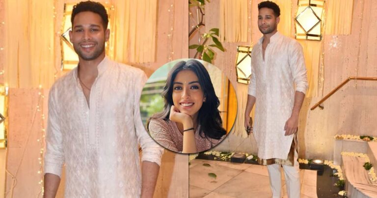 Last night at Manish Malhotra’s Diwali party, Siddhant Chaturvedi and Navya Naveli Nanda both were present. Siddhant looked quite handsome as he donned a cream-coloured self-embroidered kurta, and completed the look with a white pyjama and shoes. On the other hand, Navya Naveli Nanda looked super pretty in a red-coloured two-piece set and glam makeup.