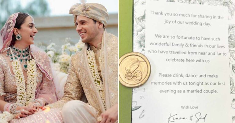 Sidharth Malhotra and Kiara Advani’s note further read, “Please drink, dance and make memories with us tonight as our first evening as a married couple. With Love, Kiara & Sid.”