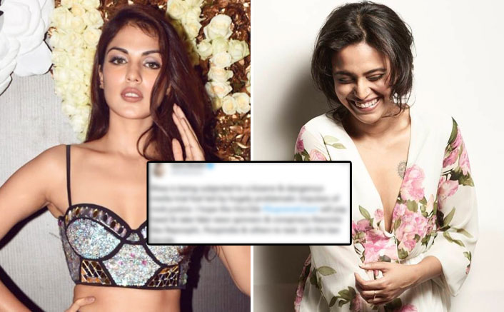 Rhea Chakraborty is being subjected to a dangerous media trial in the Sushant Singh Rajput case, feels Swara Bhasker.