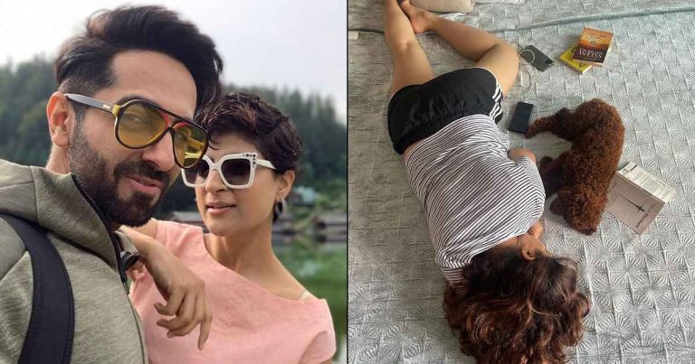 “@ayushmannk caught us napping! #peanut #siesta #puppylove (got some of my best company in bed (book emoji) and (dog emoji) and yea (phone emoji) too!),” Tahira Kashyap captioned the image.