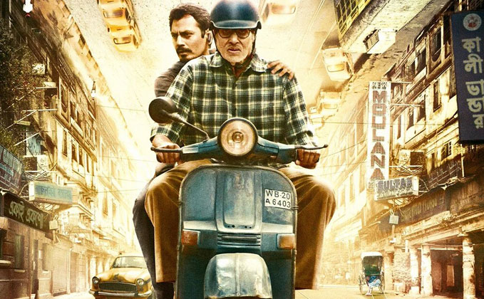 Check out the new poster of Te3n, featuring Amitabh Bachchan & Nawazuddin Siddiqui. The poster is weird but interesting. Amitabh and Nawaz are seen on a scooter but the road is shown upside down.