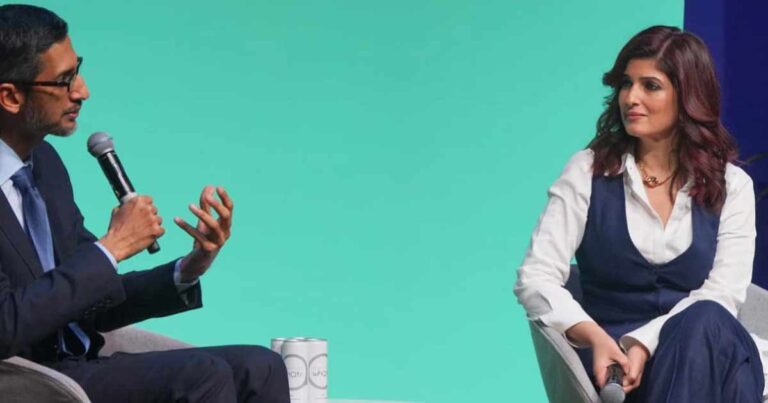 Film producer and author Twinkle Khanna recently got a chance to speak to Google CEO Sundar Pichai at an event, where she was seen interviewing him.