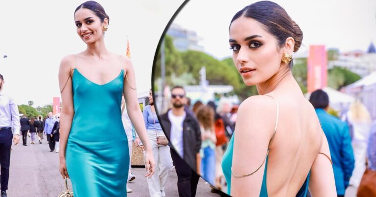 Sharing the new pictures on Instagram, Manushi Chhillar captioned it, “Just a normal day at #Cannes👗👗👗” In the photos, the former Miss World can be seen donning a backless satin dress in vibrant turquoise colour by Galvan London and it comes with a plunging neckline.