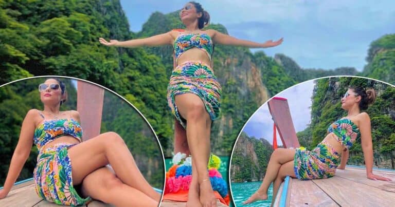 Hina Khan’s aesthetic Instagram feed gives you all kinds of vibes from fashion, travel to starry. The beauty is currently vacationing in Phi-Phi Islands which happens to be in Thailand and is giving us travel goals with her pictures and videos. The actress took to her Instagram and has shared fresh pictures of herself wearing a floral print co-ord set which came with a cute top and a short skirt. Scroll below to take a look at her pictures.