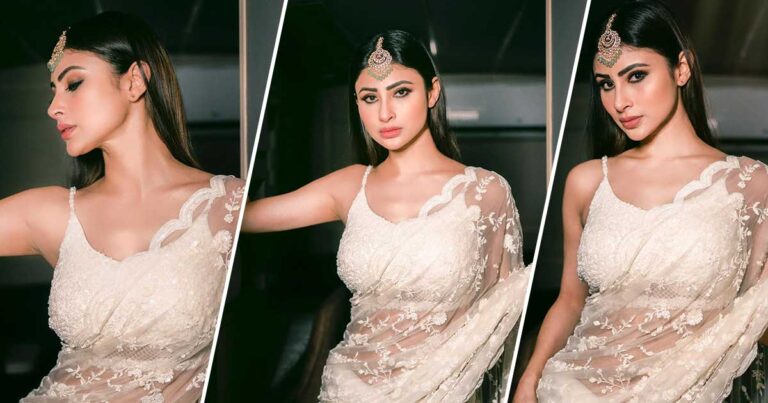 Mouni Roy is the belle of the ball who never fails to mesmerize viewers with her enchanting looks. Always raising the fashion bar high, be it ethnic or modern, the Bengali beauty is known for making hearts skip a beat. The festive season is here, and we cannot wait to put our best traditional foot forward. If you are someone who is not a big fan of vibrant colors and want to hop on to the ongoing minimalistic trend with neutral colors, this might be the fit for you. Scroll ahead as we decipher Mouni’s look for you.