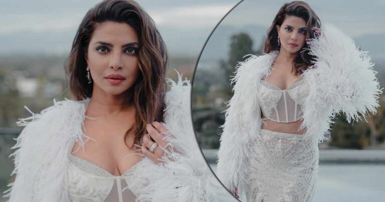 A few hours back, Priyanka Chopra took to her Instagram handle and shared a series of pictures from her recent shoot before heading towards the pre-Oscars 2023 event for South Asian Excellence, where she will co-host. For the event, Priyanka opted for a white semi-sheer corset co-ord set from Falguni and Shane Peacock couture collection, including a noodle-strapped corset and a mermaid-patterned skirt through which she flaunted her busty cleav*ge and midriff.