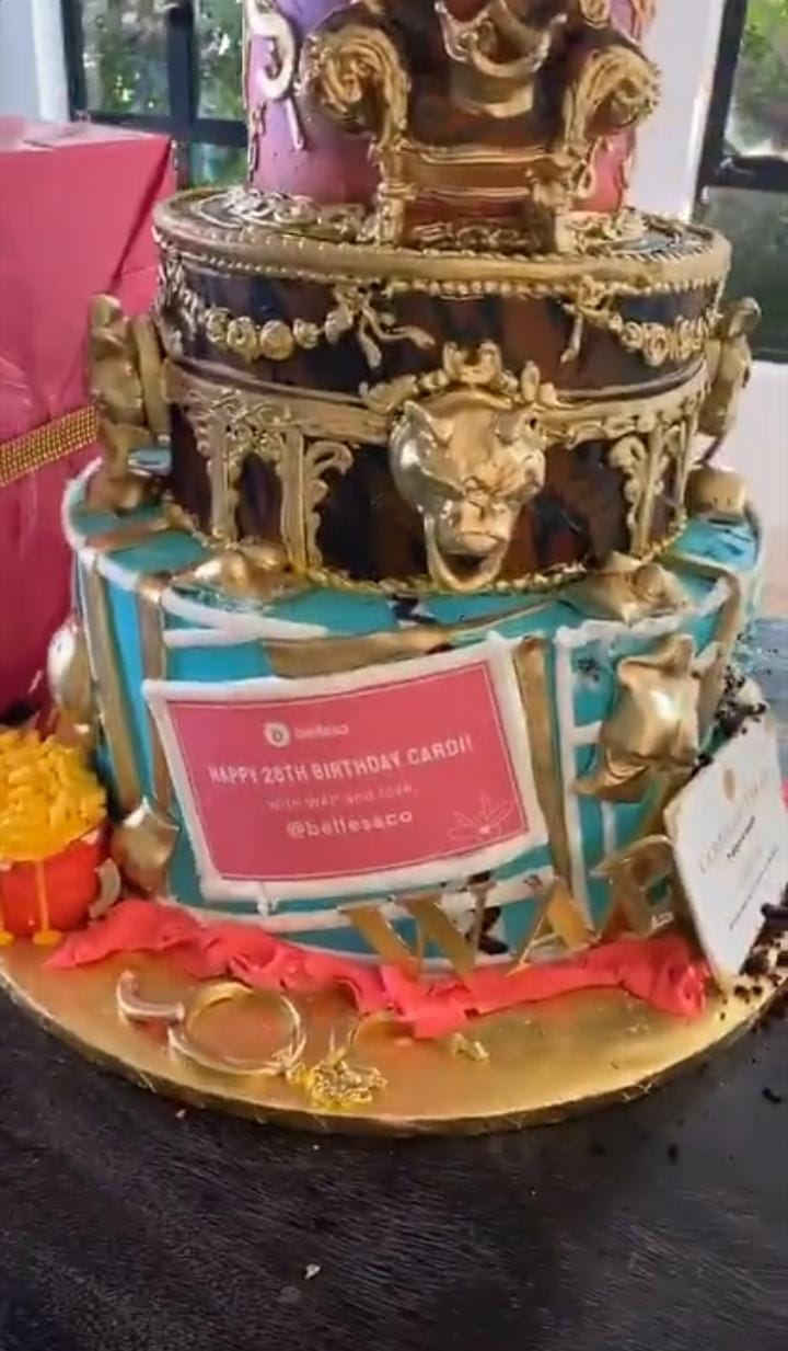 Sharing a video on her story of the cake she received from Bellesa, Cardi B is heard saying, “Look at this birthday cake I received from Bellesa. Woah!” The video then focuses on her daughter Kulture’s excitement seeing the cake.