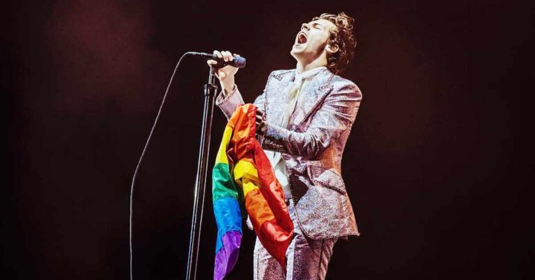 During his Sunday concert at London’s Wembley Stadium, Harry Styles caught sight of an enthusiastic Italian supporter holding up a sign that read – “From Ono to Wembley: Help me come out.” Not one to not indulge his fans‘ requests – especially when it comes to helping them come out, the single happily obliging and he waved a rainbow flag doing just that. And here’s how it went.