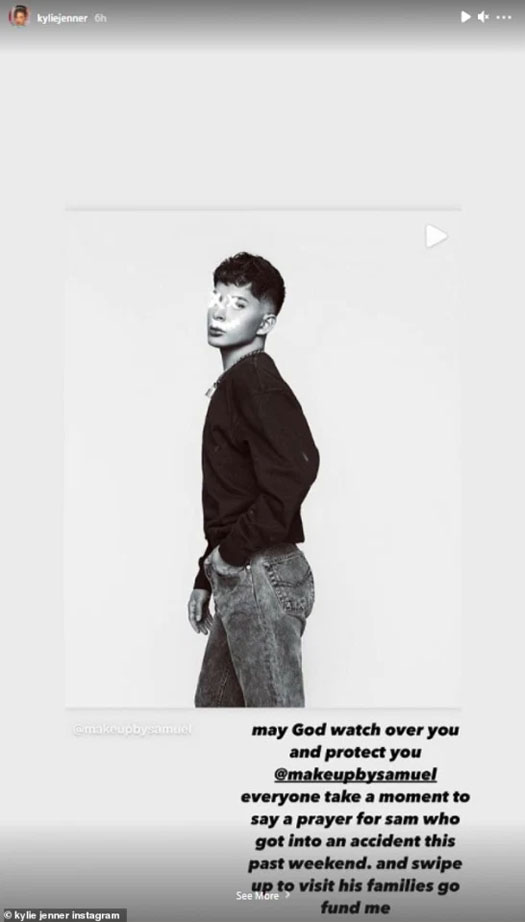 The beauty shared a picture of Samuel with a heartfelt caption that read, “May God watch over you and protect you @makeupbysamuel everyone take a moment to say a prayer for Sam who got into an accident this past weekend. And swipe up to visit his families go fund me.”