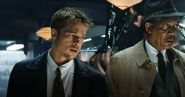 For those who’ve somehow avoided spoilers for nearly three decades (which is highly impressive), Se7en is David Fincher’s masterclass in psychological horror and noir-drenched suspense. It follows veteran detective William Somerset (Morgan Freeman) and his hotheaded partner David Mills (Brad Pitt) as they hunt a methodical serial killer, John Doe, played with chilling precision by Kevin Spacey.