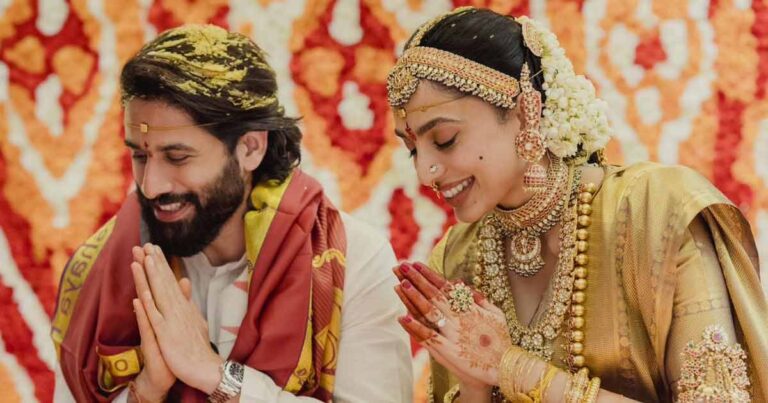 Akkineni Naga Chaitanya and Sobhita Dhulipala tied the knot in a much-anticipated ceremony at Annapurna Studios in Hyderabad. The celebrity wedding created quite a buzz, with Sobhita turning heads in her self-designed wedding attire, adding a personal and unique touch to the celebration.