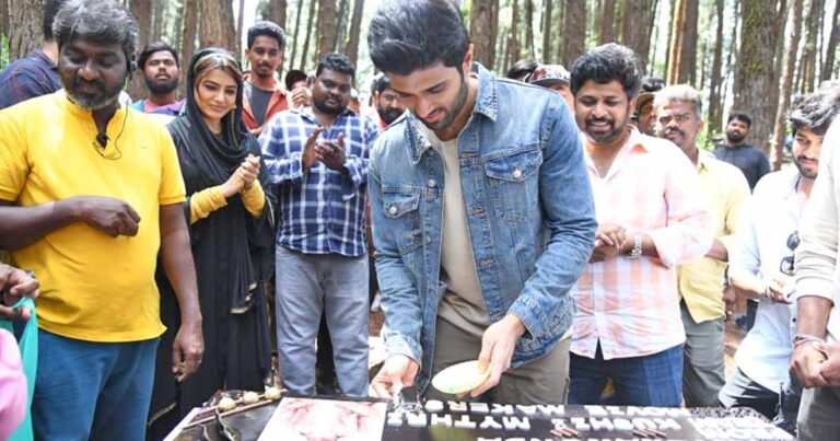 Vijay Devarakonda had a very wholesome working birthday full of shoot, song release and a beautiful close knitted celebration with the team of Kushi. The superstar was also seen cutting cake with the entire cast and crew of the film Kushi. On the auspicious day of his birthday, the most anticipated song from the film Kushi, ‘Na Roja Nuvve’ was dropped and the viewers couldnt have enough of Vijay Deverakonda’s enthralling screen presence.