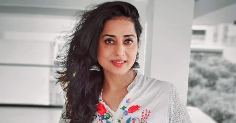 In the show Gill plays the character named Saraswati Devi and the story is set in the ’90s era.