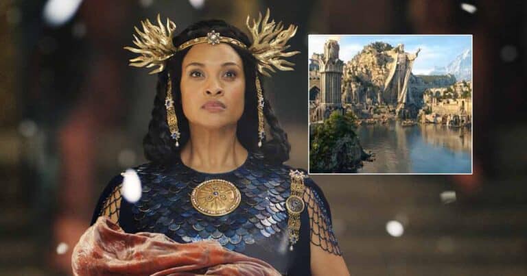 Surrounded by the ocean, the island kingdom offers picturesque views with a grand history. Actress Cynthia Addai-Robinson, who plays Miriel, the queen regent of Numenor, describes it as “a very nautical society at the height of its power.”